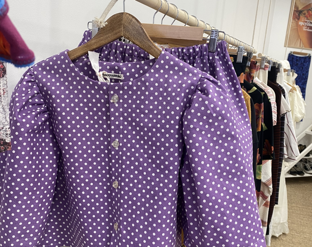 La blouse à pois Emily est faite en toile 100% coton, elle se ferme avec des boutons et à une coupe droite oversize.