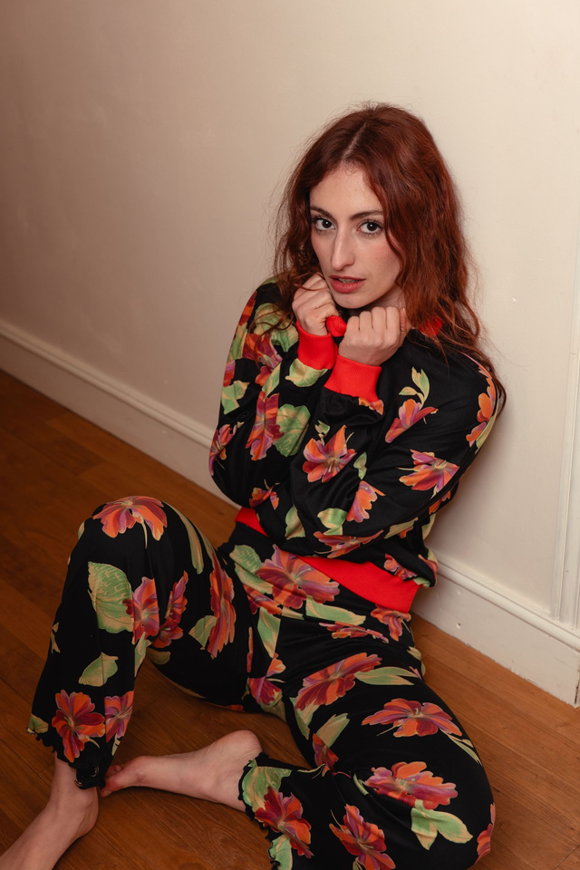 Sweat en coton motifs à fleurs. Coupe droite, cintré à la taille.