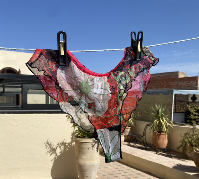 Un tanga ou shorty upcyclé à la taille mi-haute avec une coupe échancrée pour mettre en valeur vos jambes et vos jolies fesses !